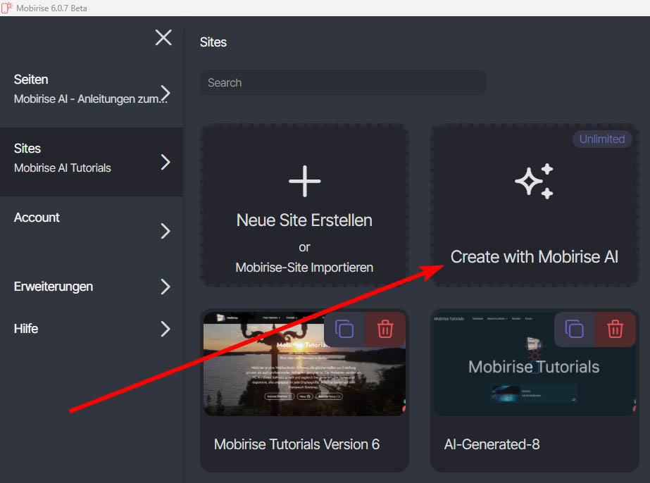 Mobirise AI verwenden