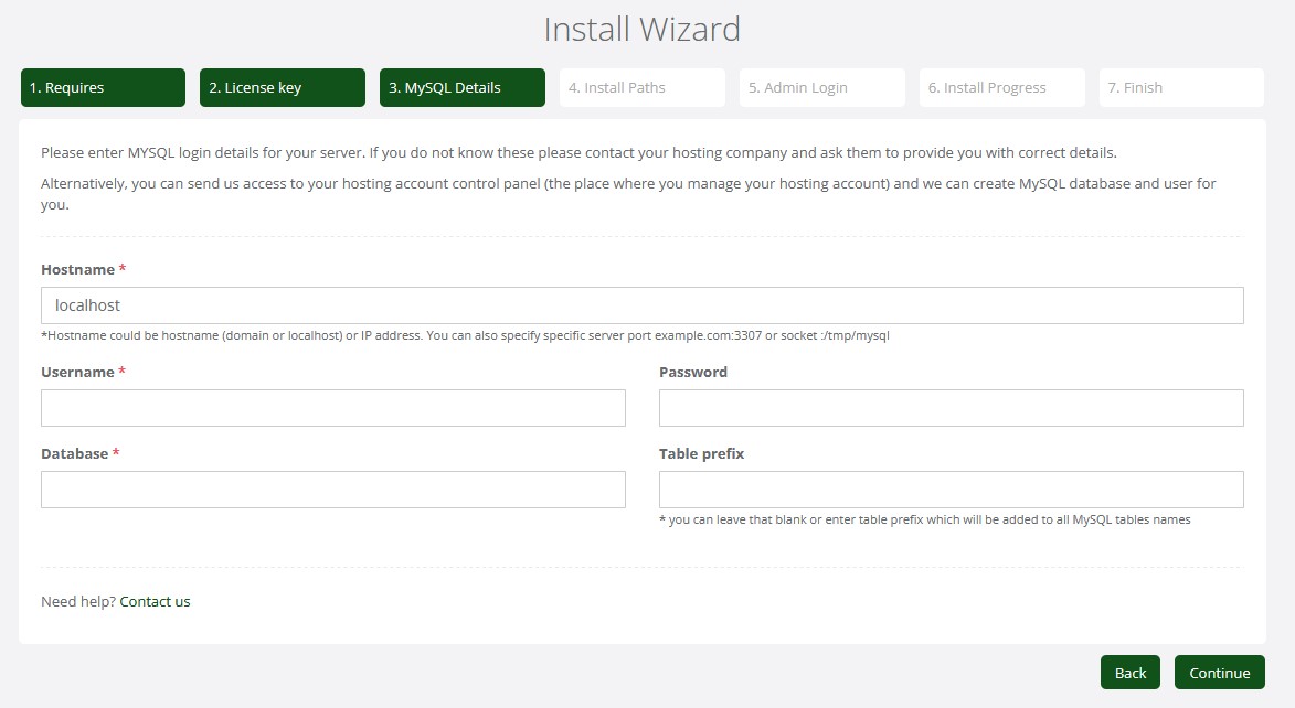 Den Eintrag "Table prefix" könnt ihr leer lassen. Ein Tabellenpräfix ist ein Präfix (Vorsilbe), das jedem Tabellennamen vorangestellt wird.