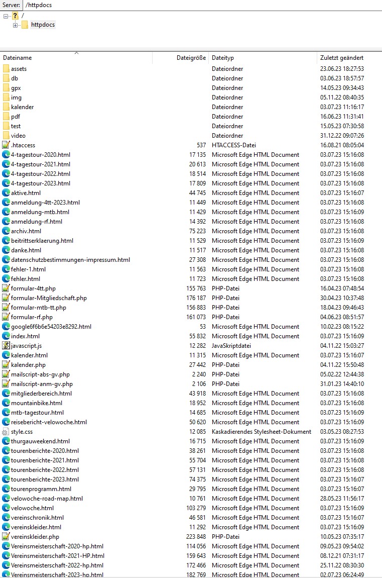 Der Server-Inhalt sieht so aus. Du siehst auch, dass die Seiten die ich bearbeitet habe aktualisiert werden: