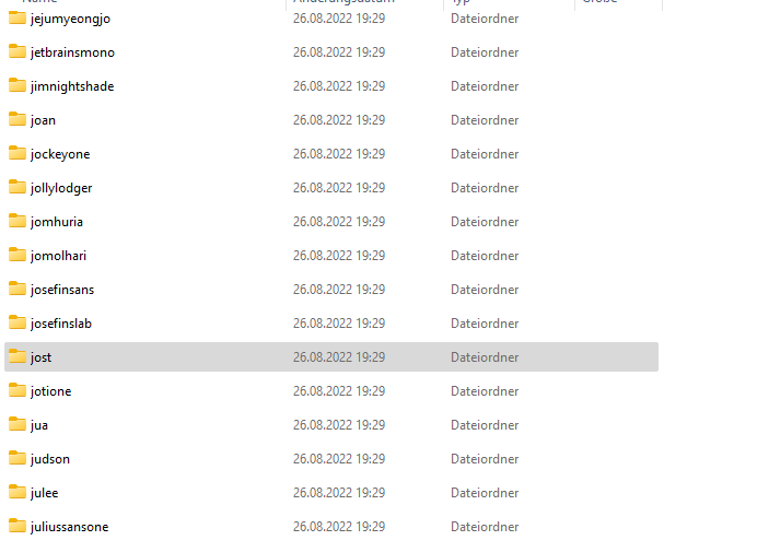 Habe dann einfach in einem vorhandenen Projekt die Schrift JOST gegen die lokale ausgetauscht.