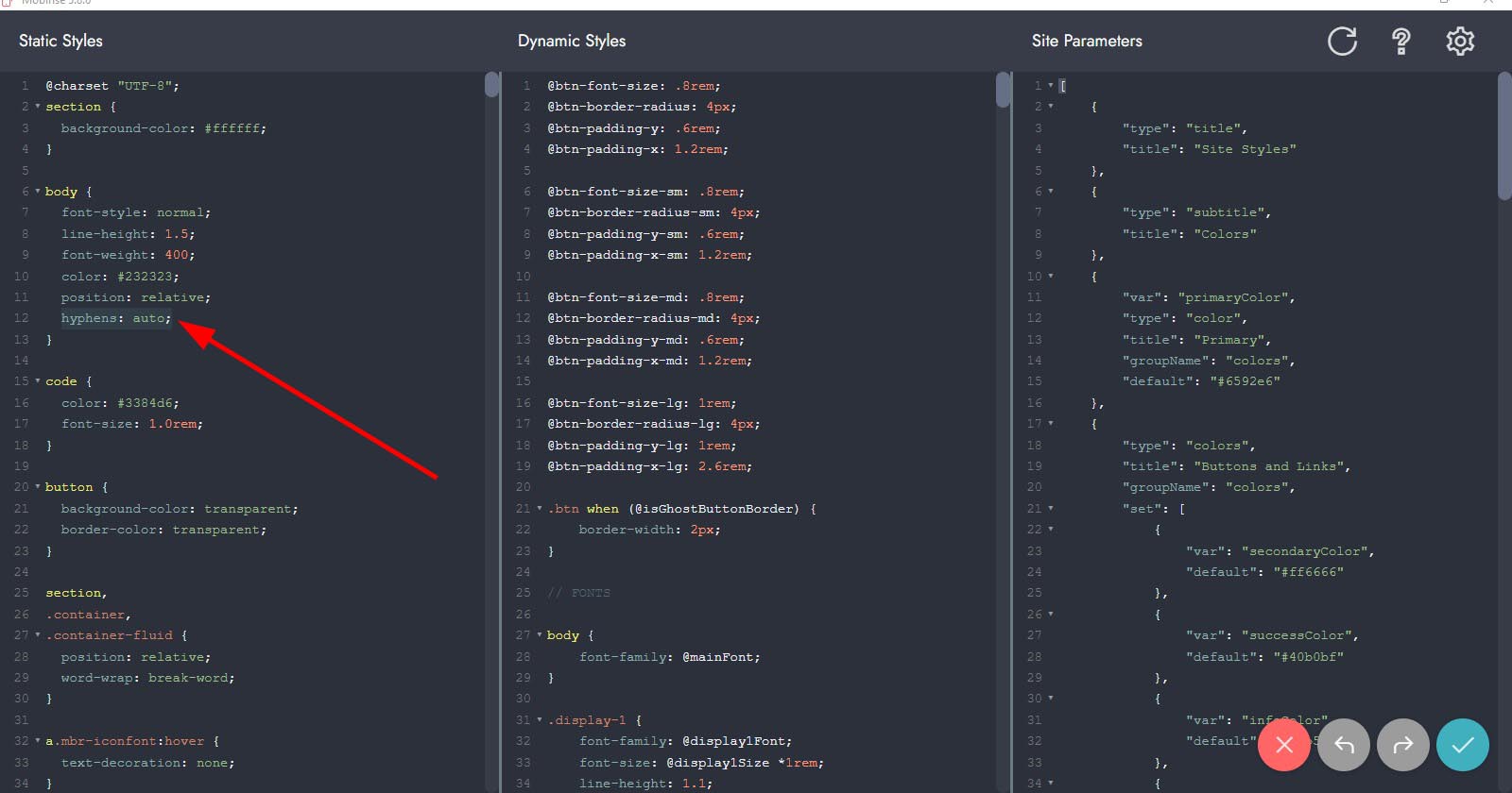 Es wäre in Mobirise aber schon etwas eleganter dafür kein eigenes Style-Tag zu setzen, sondern das in die globale CSS vom "Code Editor" (am "Style-Pinsel" Symbol unten rechts auf jeder Seite) einzutragen, also z.B. dann am <p> oder eben auch am <body> Tag, wie in diesem Screenshot zu sehen:
