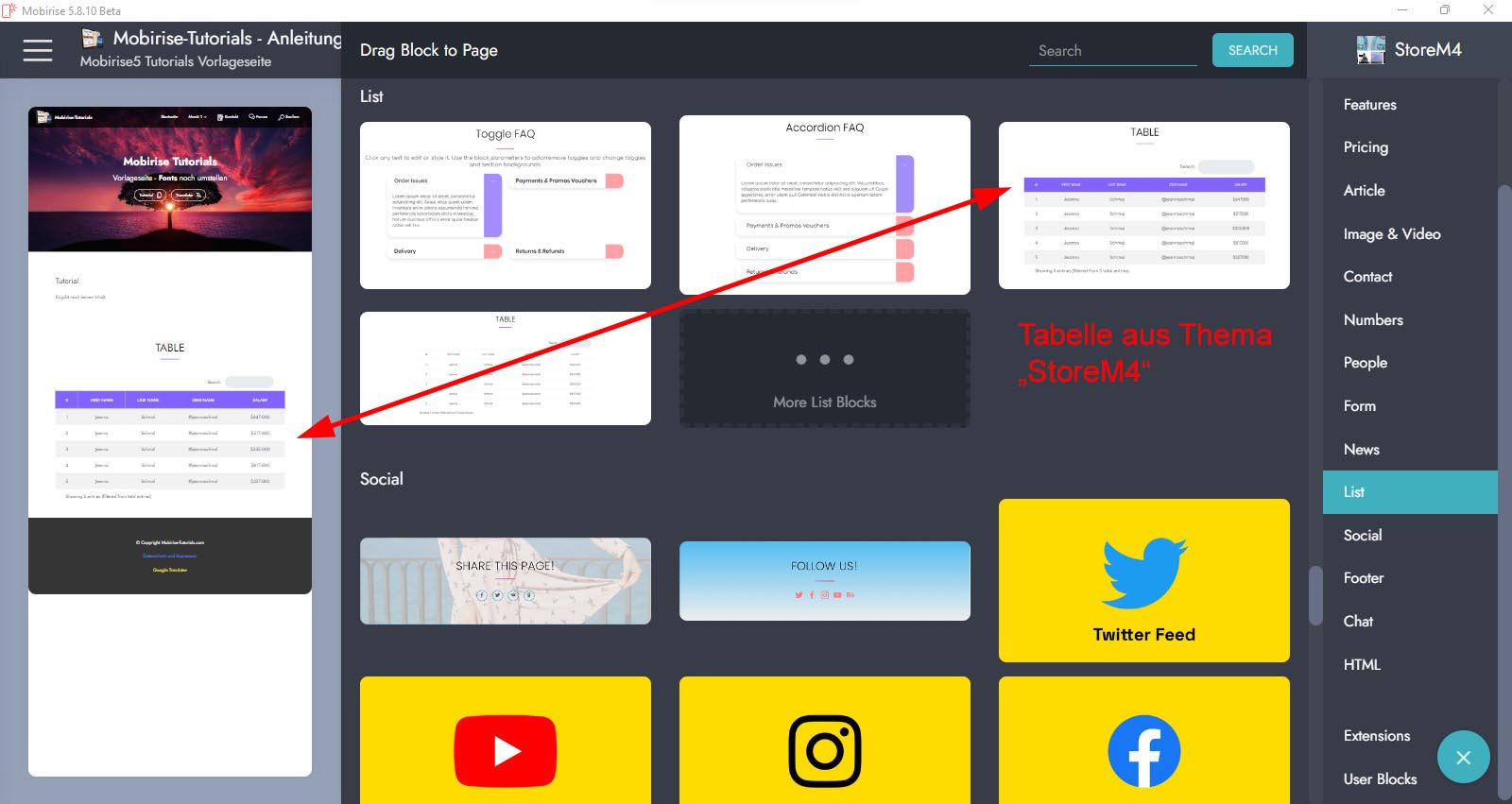 Diese Tabelle findest Du unter der Rubrik "List" und man kann diese, mit etwas CSS-Änderung, auch im Thema "Mobirise5" verwenden: