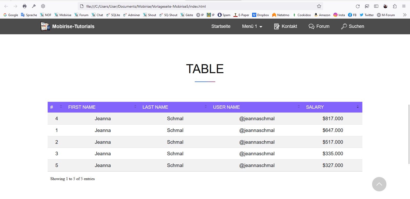 Klappt noch wieder ganz gut. Einzig allein an den von Mobirise angebotenen Tabellen scheitere ich momentan.