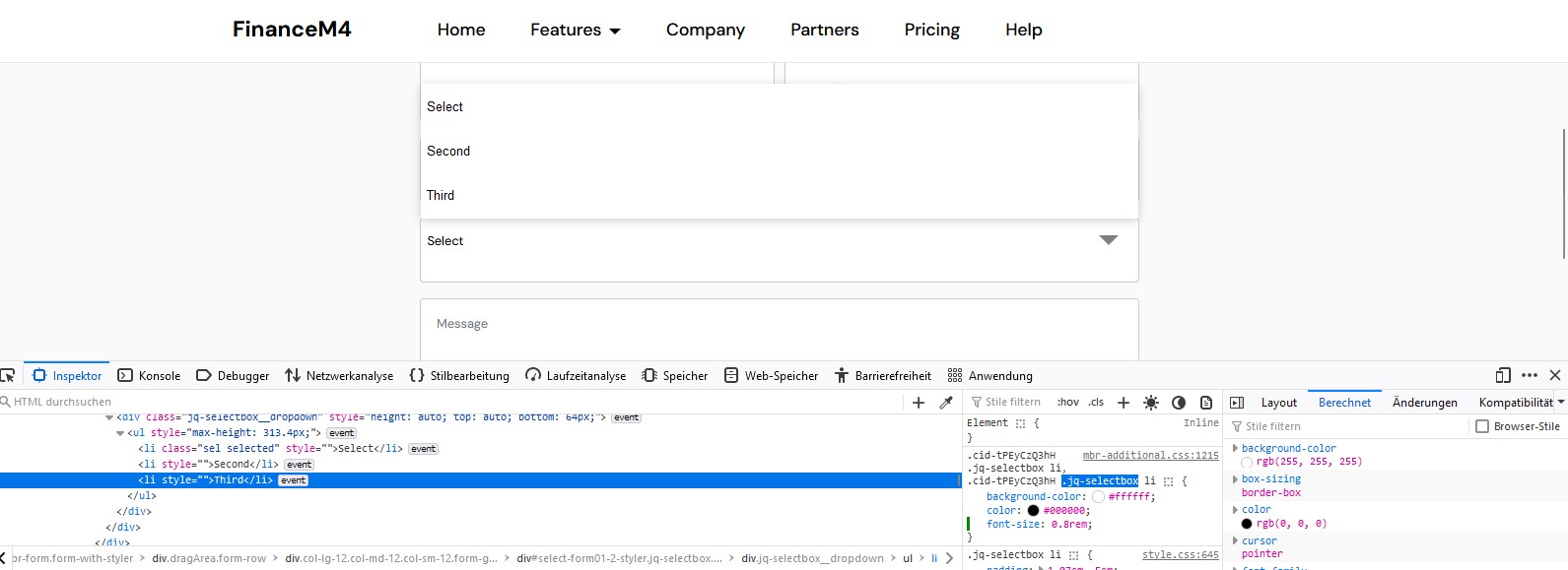 Re: Schriftgrösse Kontaktformular / Theme FINANCE M4