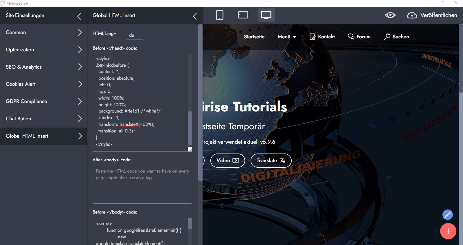 An welcher Stelle im Mobirise-Programm muss ich das ändern? Site-Style? ...
