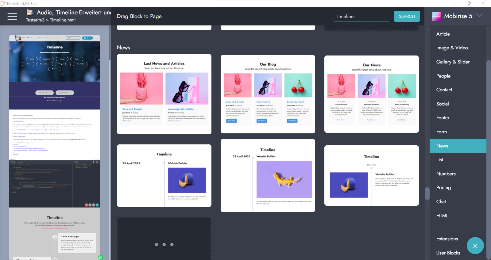 Dort findest Du diese Timeline-Blöcke dann auch.