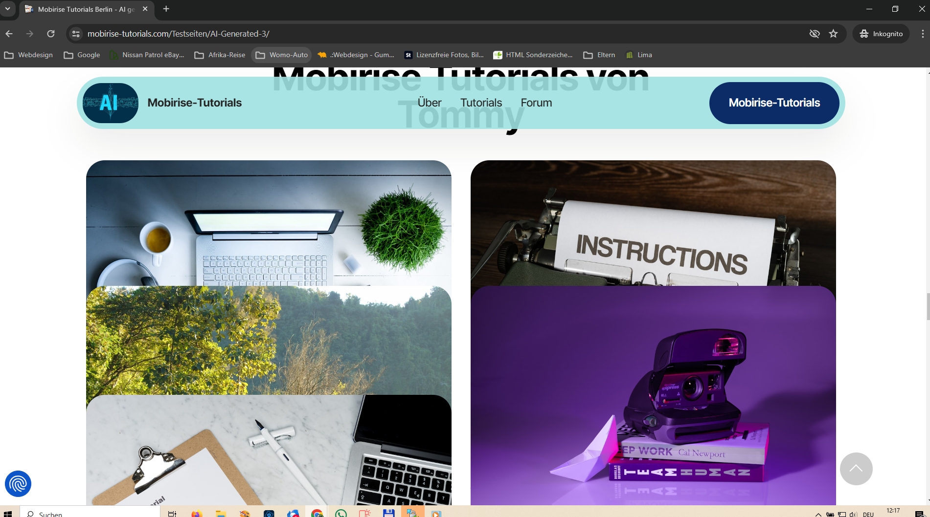 Hier meine Testseite, generiert mit der neuesten Version vom 09.11.2023 durch "Mobirise-AI":