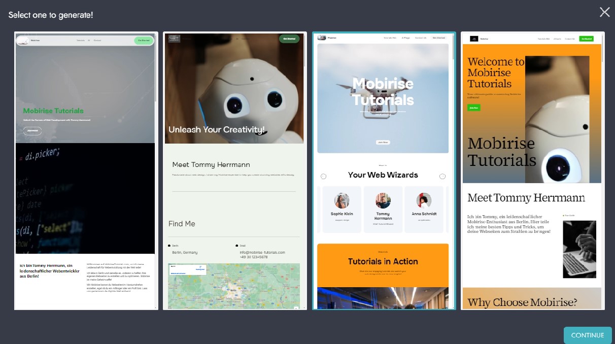 Ich habe soeben einen weiteren Test mit dem aktuell entwickelten "Mobirise AI" erstellt, jedoch nicht veröffentlicht.