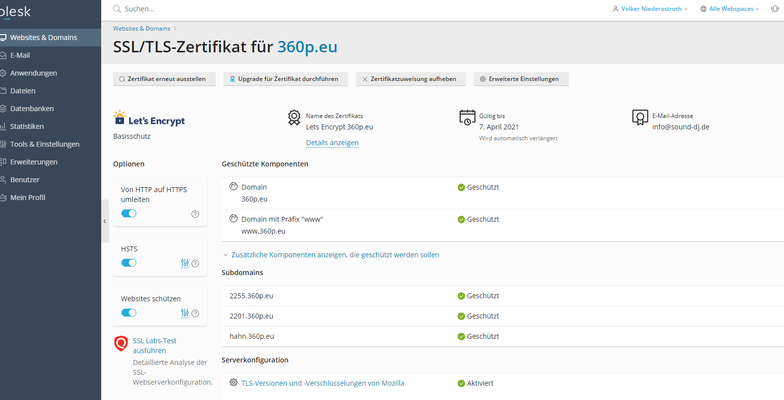 Jetzt hat die Subdomain kameratraining.markus-eberhard.com, aber kein SSL-Zertifikat und Host Europe hätte gern wieder knapp 30€ im Jahr dafür...