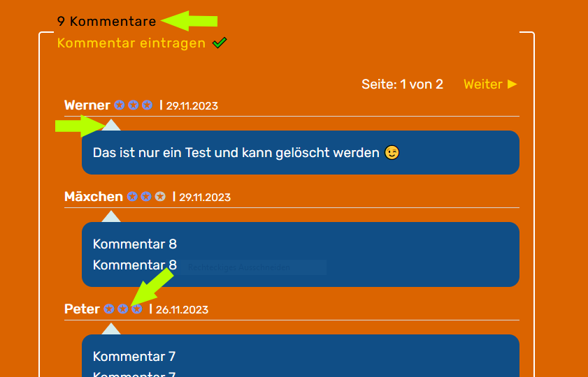 struggle hat geschrieben: Sa 2. Dez 2023, 18:56 Da habe ich in der kommentar.css für OK ein stärkeres Blau eingestellt und für KO die Hintergrundfarbe der Kommentarbox, so dass man dann nur die Sternchen für OK sieht, das wurde aber nicht übernommen.