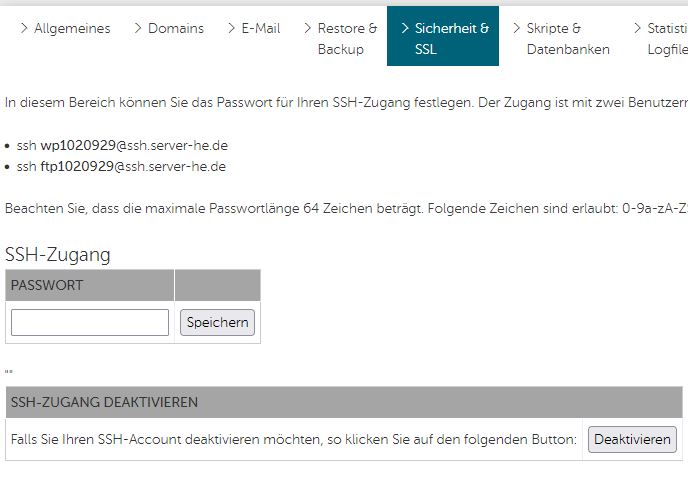 Passwort: Wie von Ihnen für den SSH-Zugang vergeben.