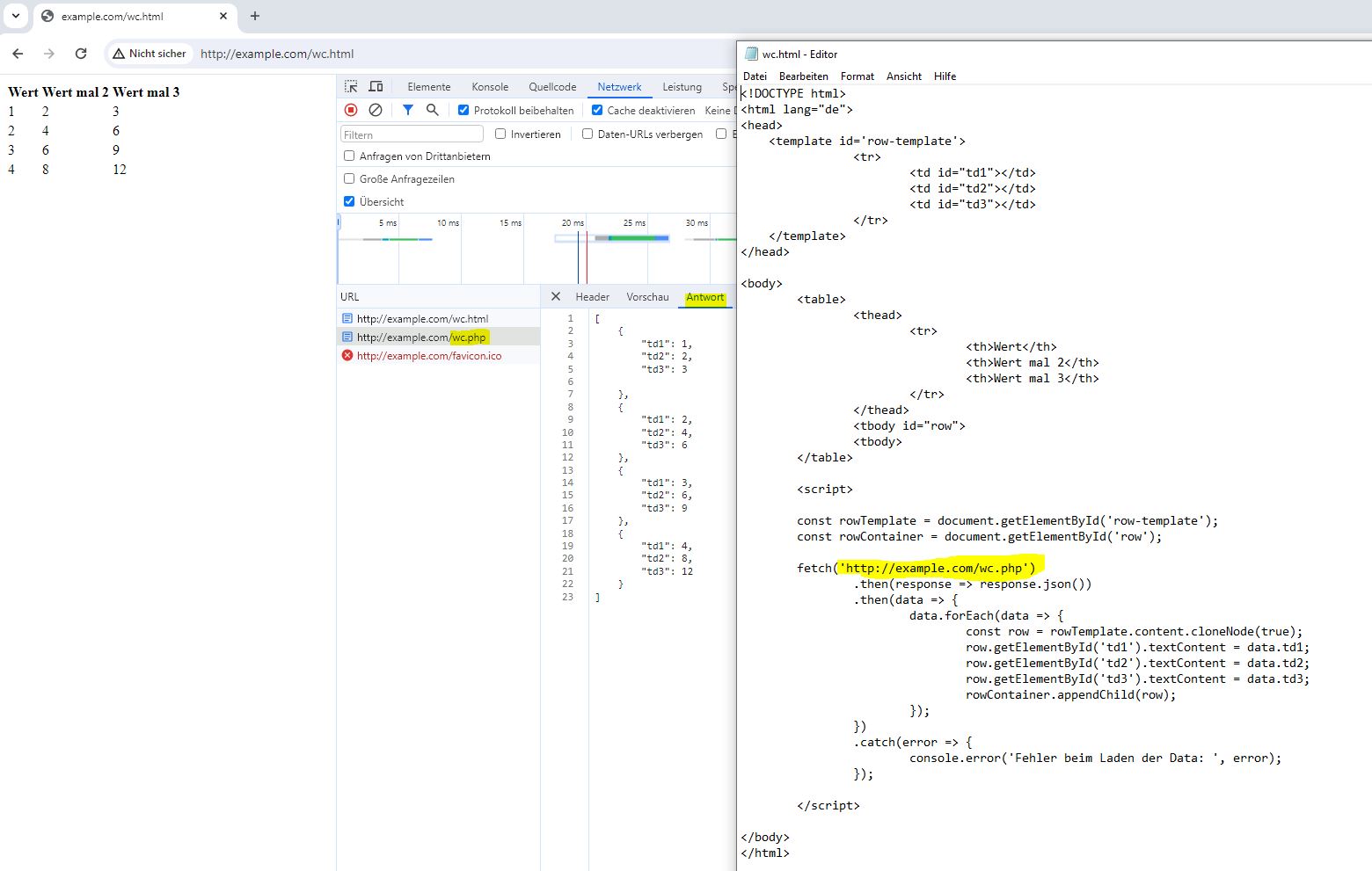 Dann habe ich den kompletten Code in der Seiteneistellung unter „inside <head> code“ eingefügt. Hier wird die Tabelle abgerufen wie ich die haben will – allerdings ist diese ganz am Seitenanfang und die Navigation ist verschwunden. Mit <link rel="stylesheet" href="/css/table.css"> konnte ich die Tabelle auch formatieren, aber wie bekomme ich diese Tabelle in einen Texblock rein, da wo ich die haben/sehen will?