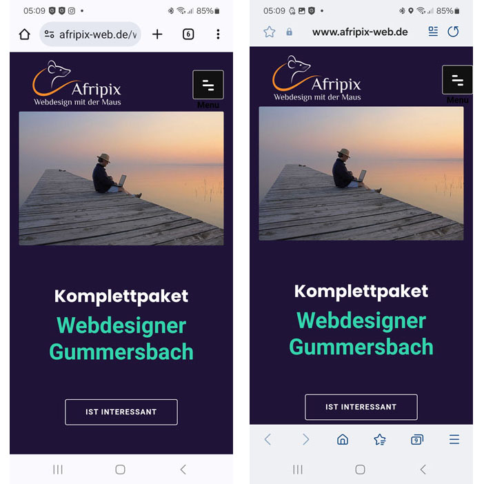 Am Screenshot habe ich mal beide Browser direkt nebeneinander gestellt.