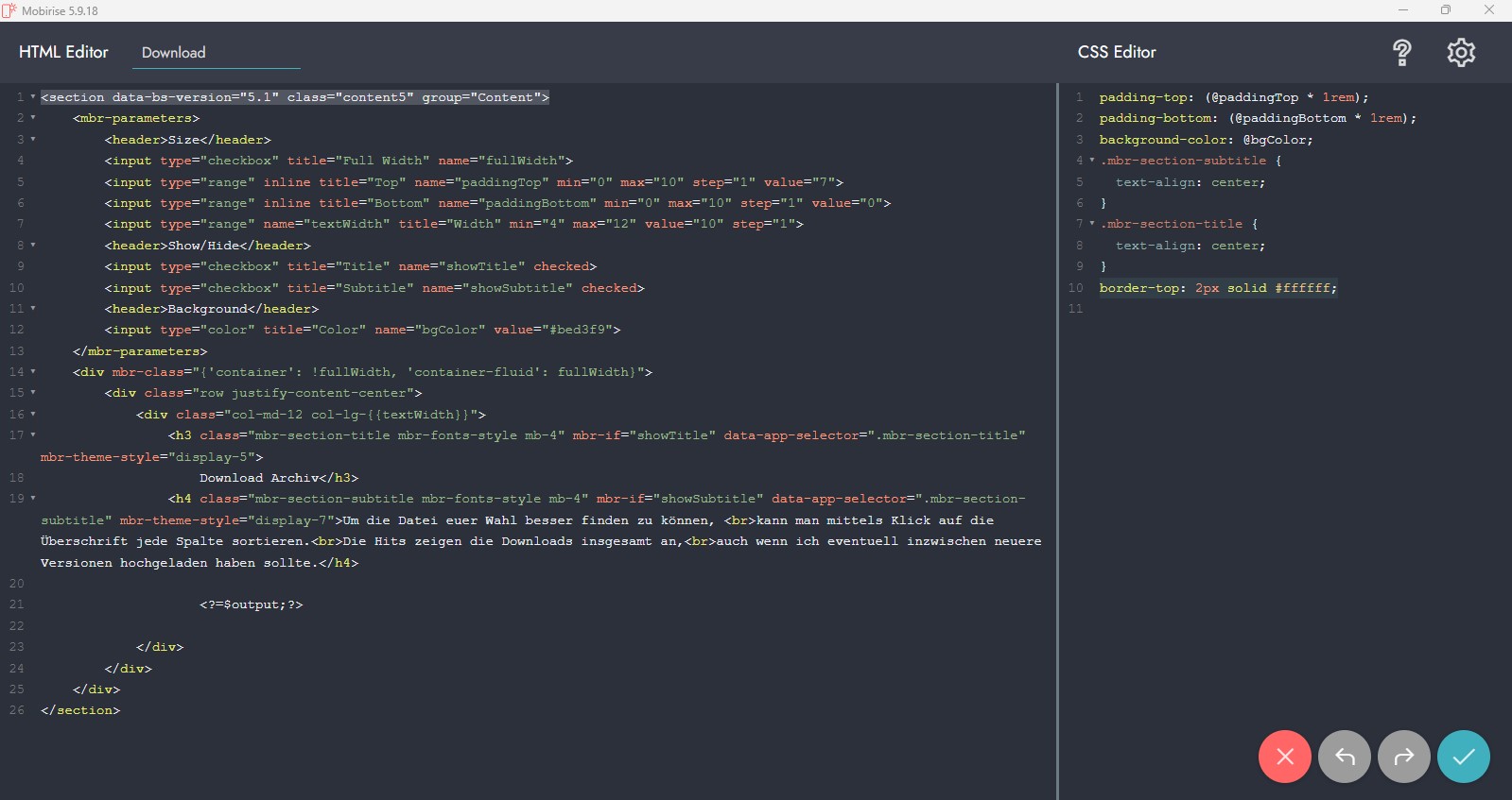 Ich habe nun noch ein Tutorial zur Erweiterung der Toolbox von Mobirise geschrieben. Im Prinzip kann man das beliebig ausbauen und so alle möglichen Parameter hinzufügen.