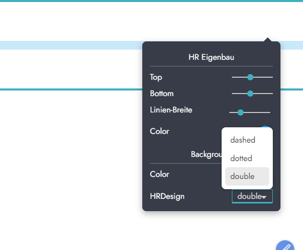 Volker hat geschrieben: Sa 4. Mai 2024, 23:14 Leider bin ich an der Linien Dicke gescheitert. Die kann ich zwar einstellen, aber leider nicht mit der CSS an den HR Tag weitergeben.