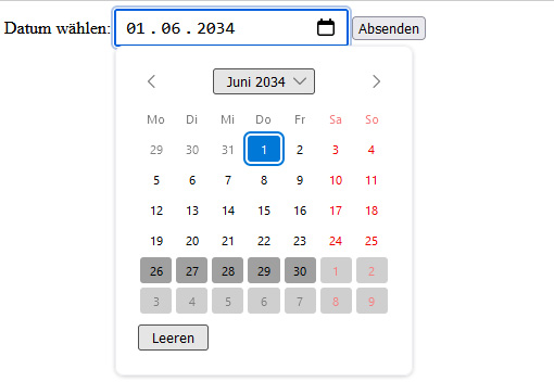 </html>Der Bereich ist also im Skript oben nur - plus/minus 10 Jahre - vom jeweiligen Tagesdatum wählbar, also heute am 25.06.2024 beginnt der Kalender am 25.06.2014 und endet am 25.06.2034: