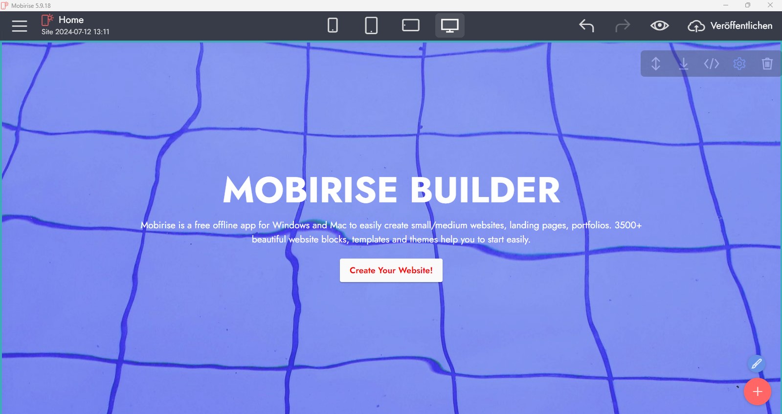 wie geschrieben geht es um den Header aus dem Mobirise Theme 5. Das Bild mit dem Wasser, wie im Screenshot.