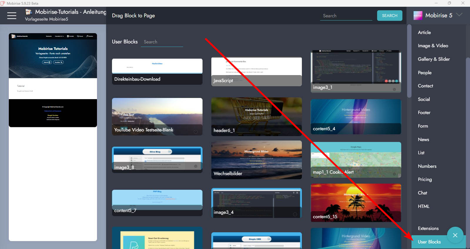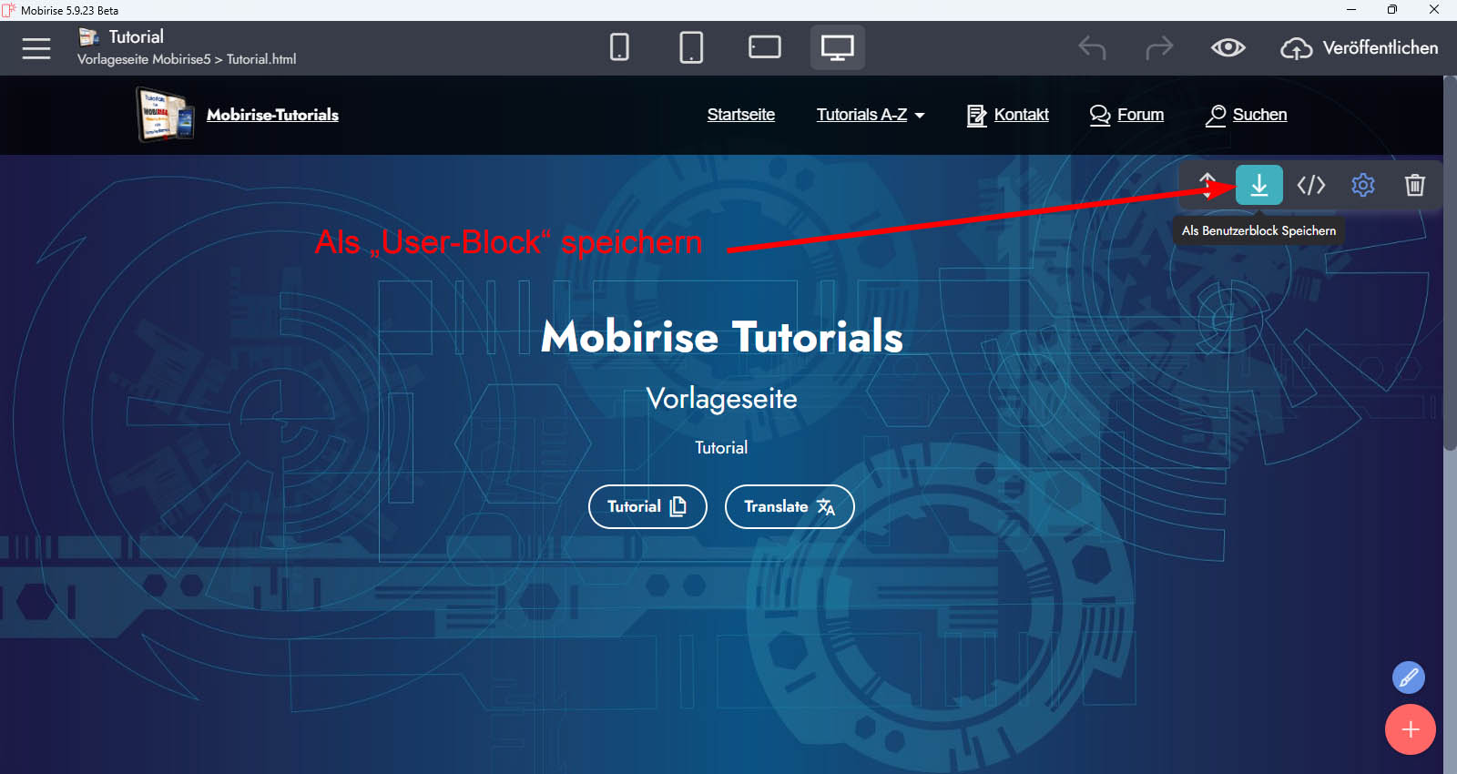 ... und später in Deinem anderen Projekt aus der Block-Auswahl (am roten + Zeichen unten rechts) wieder einfügen.