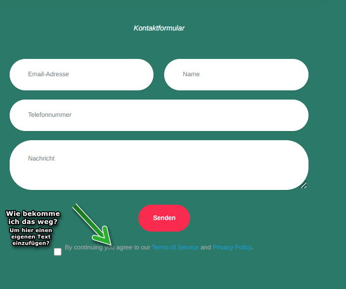 also der Text unter dem Formular ist mittels Schalter von Dir aktiviert worden, da müsstest Du nur Deinen eigenen Text eintragen mit einem Link zu Deiner Datenschutz/Impressum Seite. Frage, falls Du damit Schwierigkeiten haben solltest.