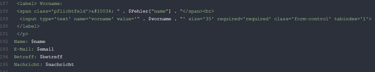 $Fehler["vorame"] = strlen($_POST["vorame"]) < 1 ? " Bitte füllen Sie dieses Feld aus!" : "";