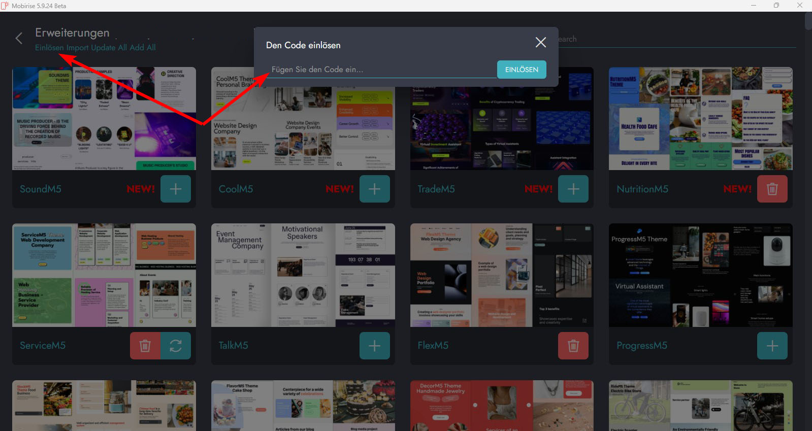 Hier, am Online-Builder, kannst Du es selbst auch testen und Dich auch mit Deinen Benutzerdaten für Mobirise einloggen: