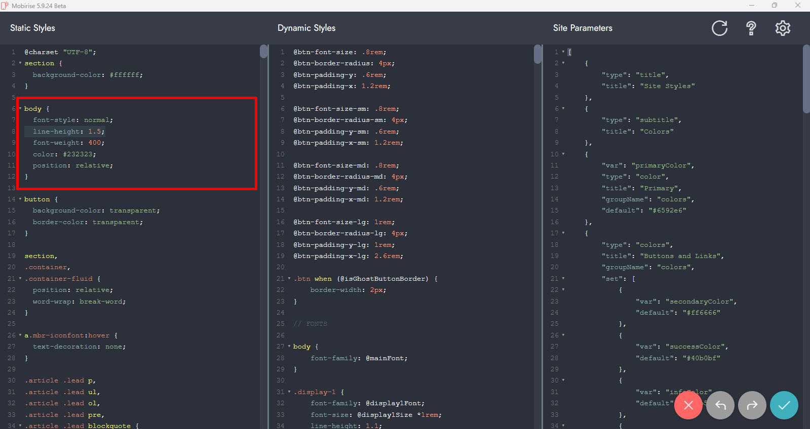 Zumindest steht da bei dem Standard-Mobirise5 - Thema eine Höhe von 1.5: