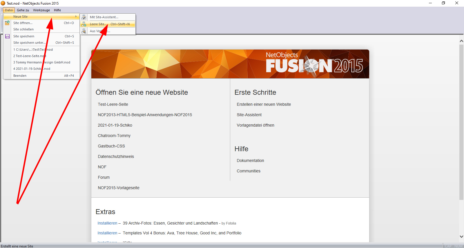 Neue leere Site erstellt.
