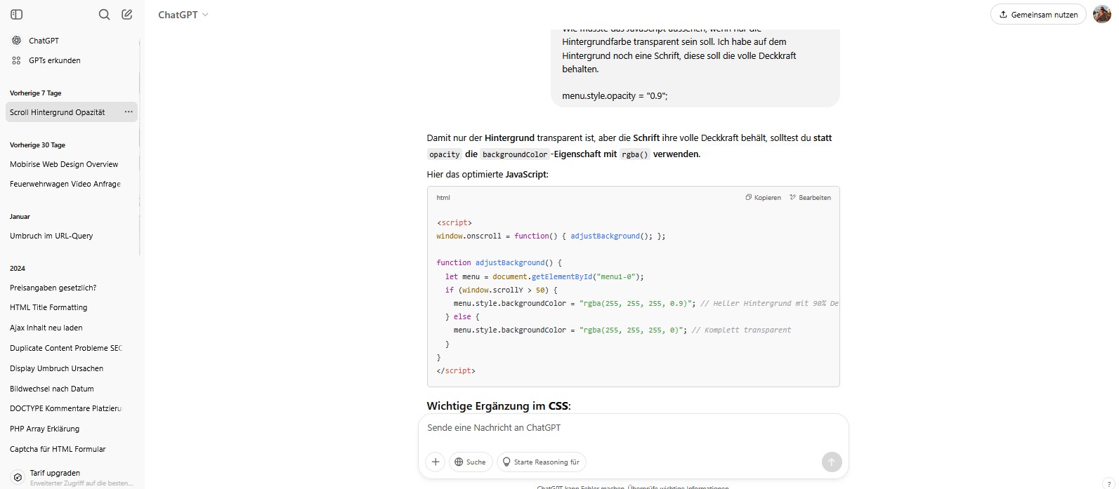 Diese Ordner legt aber ChatGPT eigentlich ganz selbstständig an. Wenn Du also später zu einem bereits bearbeiteten Thema weitere Fragen oder Wünsche hast, dann musst Du das Thema im linken Bereich zunächst auch wieder öffnen und dann dort weiter machen.