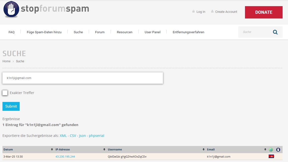 Ja - zumindest die erste Adresse ist als Spammer aus Kambodscha in einer Datenbank bereits bekannt: