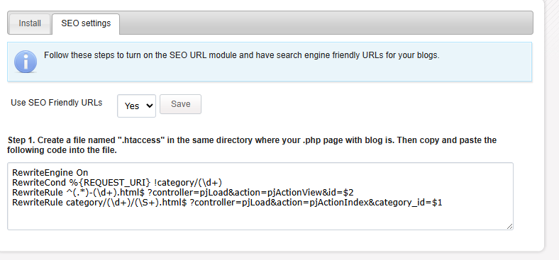 RewriteRule category/(\d+)/(\S+).html$ ?controller=pjLoad&action=pjActionIndex&category_id=$1Kannst hier sehen : https://niederastroth.de/neuerblog/blog ... uen-4.html