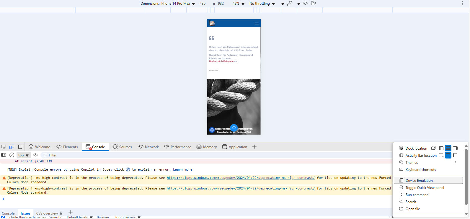Ich hatte ja diese Website extra zum Testen mit dem iPhone erstellt (wegen fixed). Ich werde morgen nochmals am iPhone 16 meiner Tochter gucken, vielleicht hat sich ja inzwischen auch mal was beim iOS getan