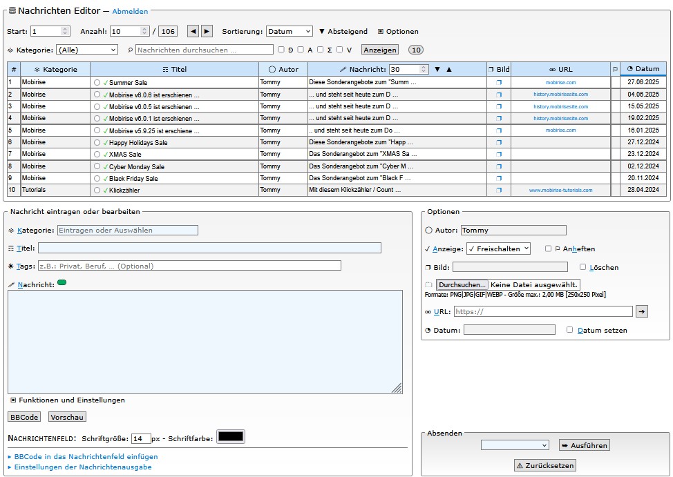 Das ist jetzt auch gleichzeitig die Endversion. Wenn ich noch was an der news.php ändern sollte, kann man die ja einfach ersetzen. Der Rest des Scriptes bleibt davon unberührt.