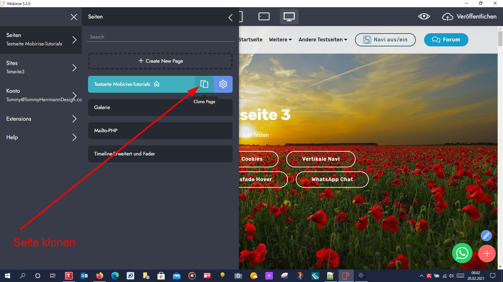 Ja, Du kannst in Mobirise einzelne Seiten problemlos kopieren. Bitte gebe dann gleich den generierten Namen wie "page1", "page2", etc. sinnvolle und eigene Seiten-Namen: