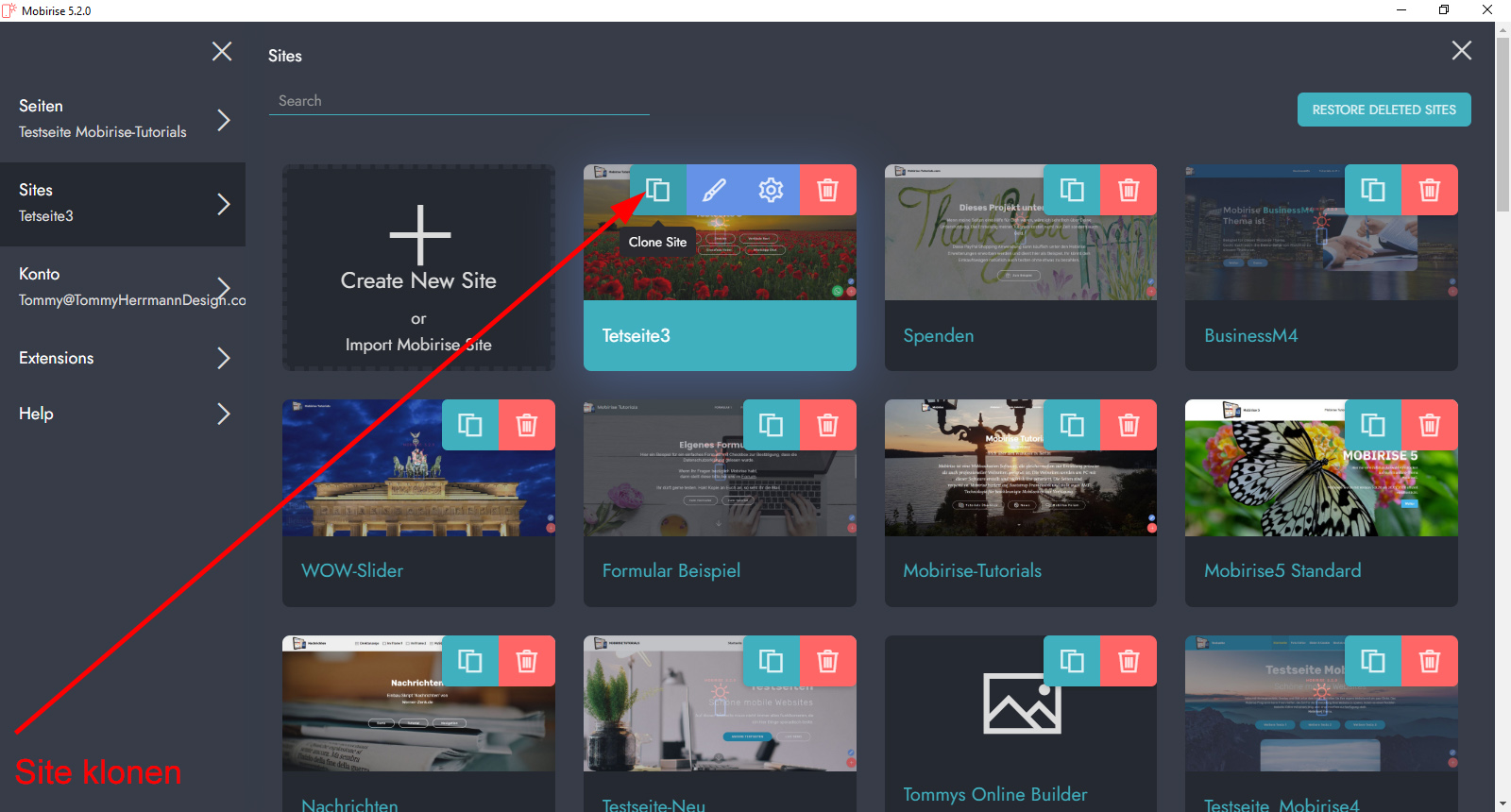 ... oder auch gleich das gesamte Projekt (Site) kopieren: