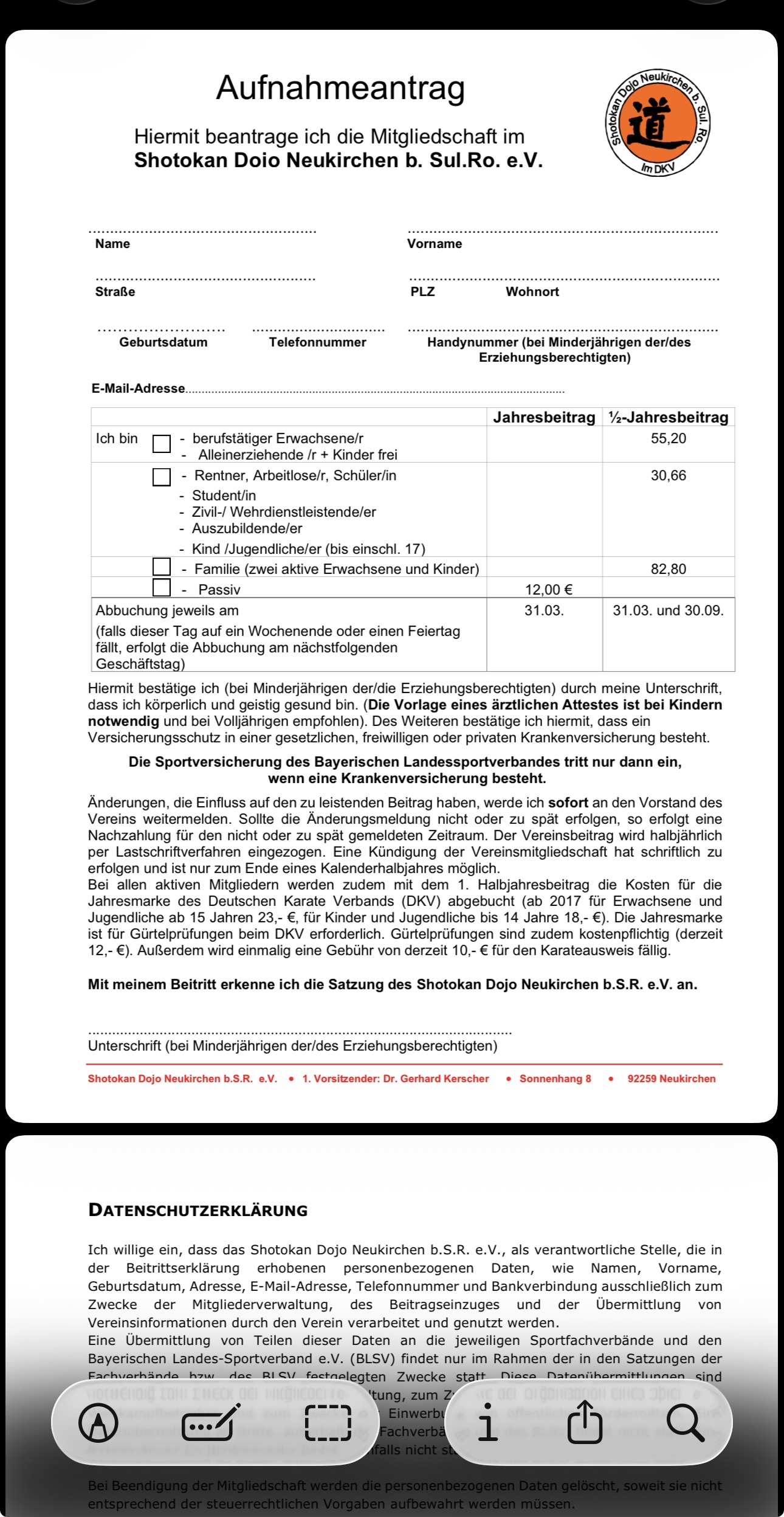 Ich würde beim Link auf der Webseite vermerken, dass das PDF heruntergeladen, ausgefüllt und an den Verein geschickt werden soll.