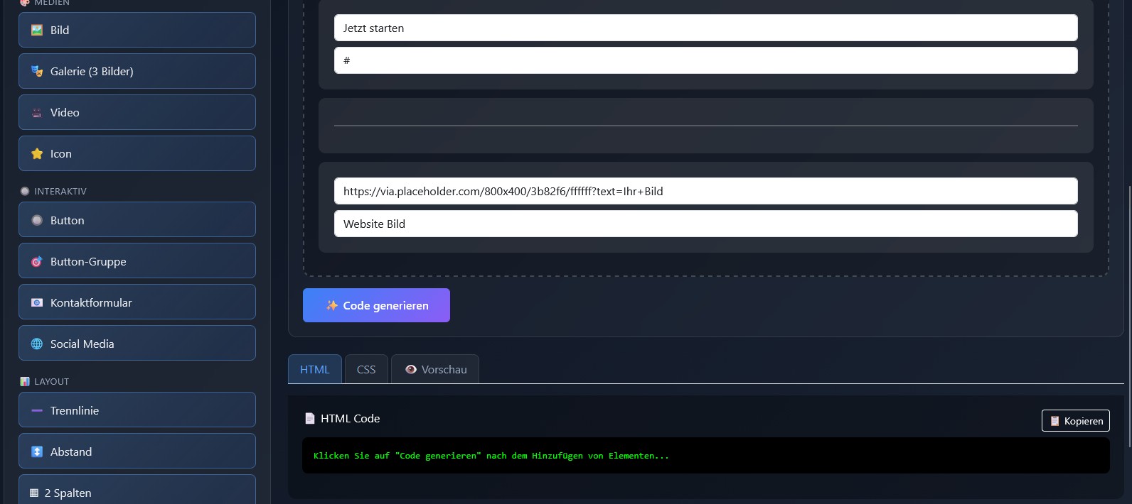 Bei mir wird allerdings nichts generiert - es passiert gerade gar nichts - nur der Hinweis, man möge auf den Button "Code Generieren " klicken: