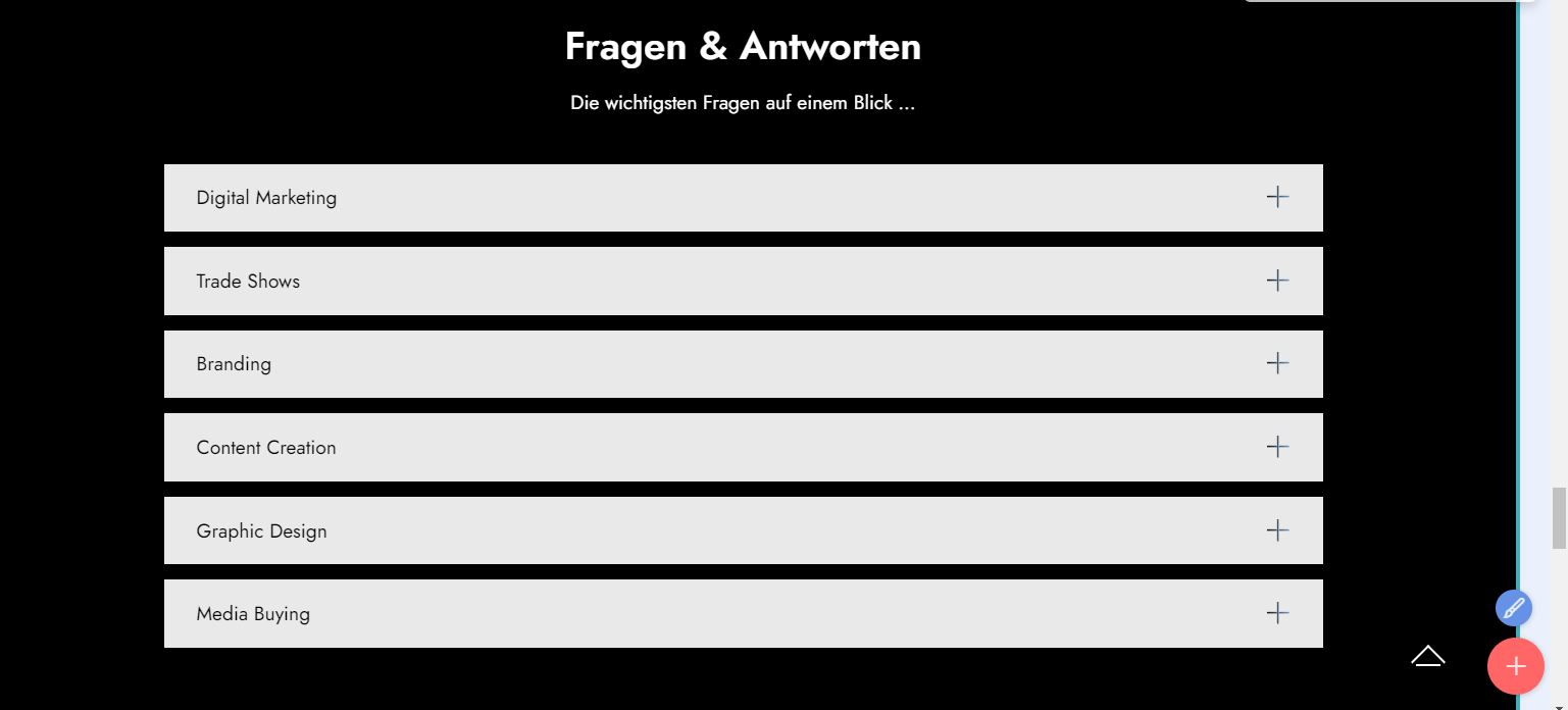 2.) Und beim Abschnitt FAQ möchte ich das gleiche tun, also dass ich diese erweitern kann.