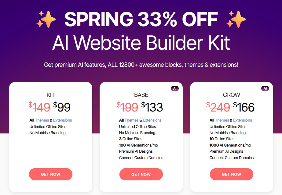 Der "Spring Sale" hat bei Mobirise begonnen und endet voraussichtlich am 07.03.2026: