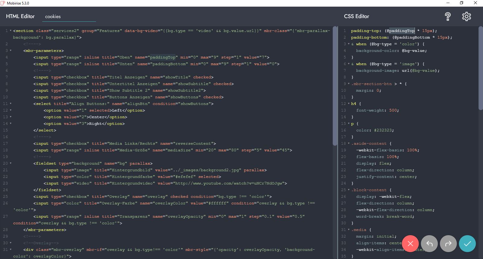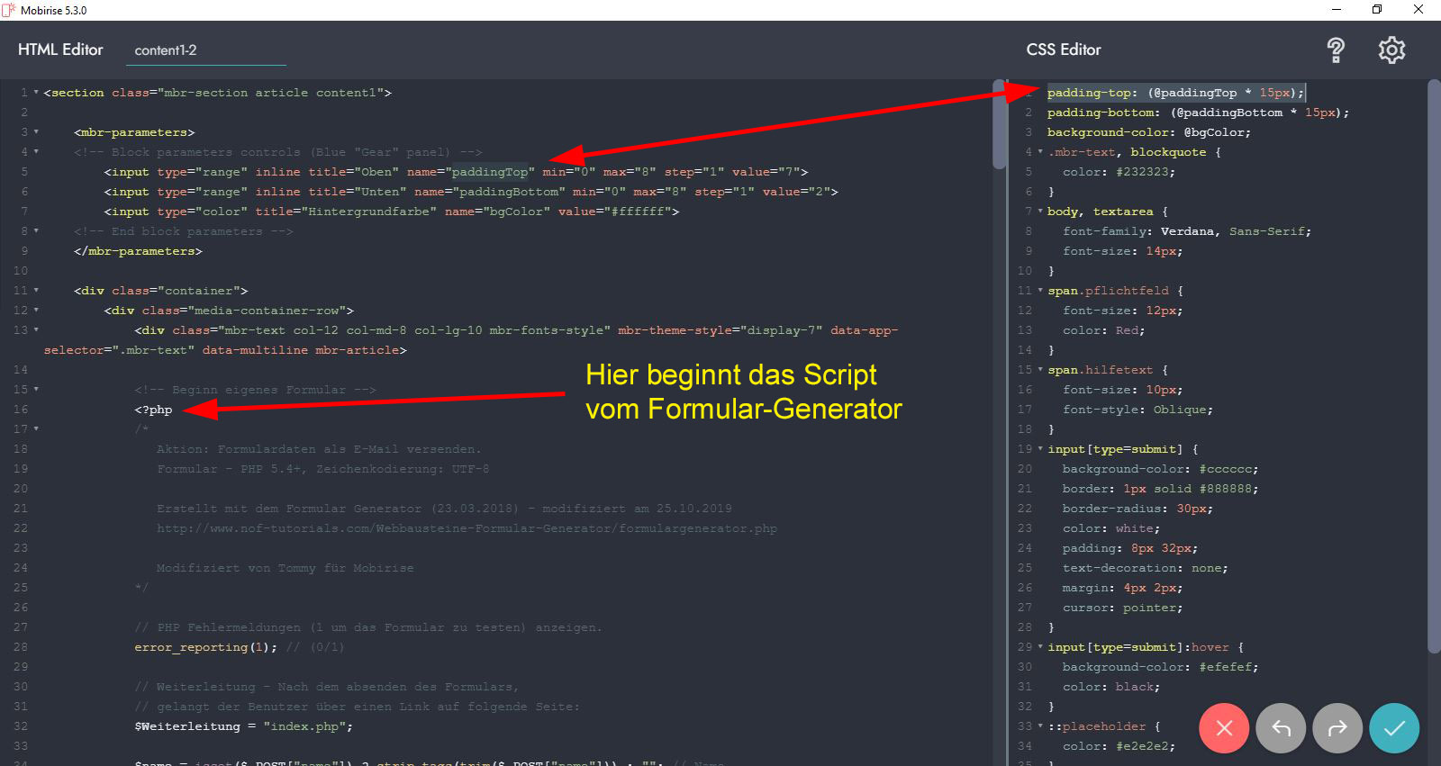 ... nur darfst Du die Mobirise-eigenen Variablen (Parameter) nicht löschen.