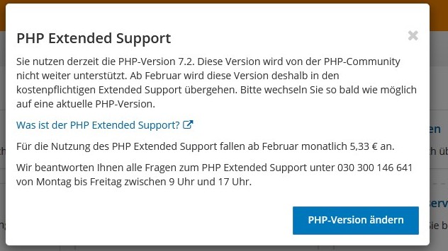 ich könnte mir vorstellen, dass es an der PHP Version 7.2 liegt