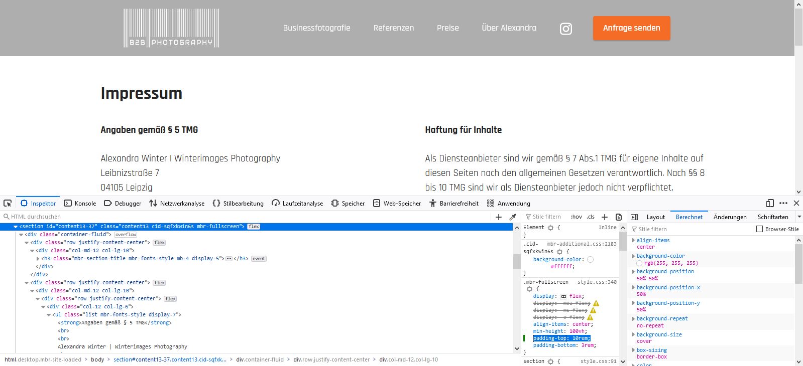 Was passiert, wenn Du auf der Seite "Impressum" dem ersten Block oben einen höheren Abstand gibst?