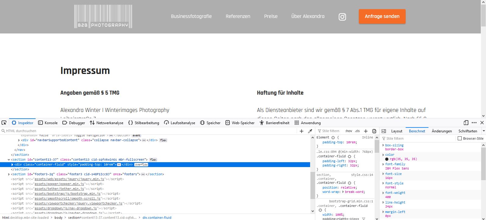 Drückt man den Link im Menüband allerdings nochmal, wird der Springpunkt nachkorrigiert und die Überschrift wird vollständig angezeit. Kann gern unter www.b2b-photography.de getestet werden.