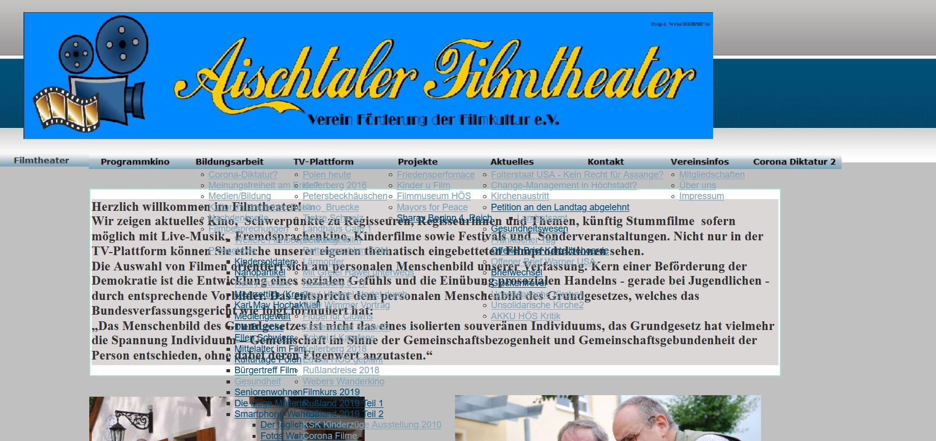 Schon der Begrüßungstext entspricht nicht mehr den Gegebenheiten. Euer Filmtheater ist doch schon seit geraumer Zeit zu.