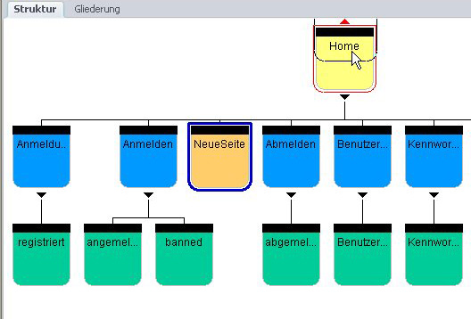 falls Du die "erste" Seite - also die Startseite "index.html" ("Home") - komplett neu aufbauen willst, dann musst Du wissen, dass man die Startseite nicht löschen kann, solange diese als oberste Seite erscheint.
