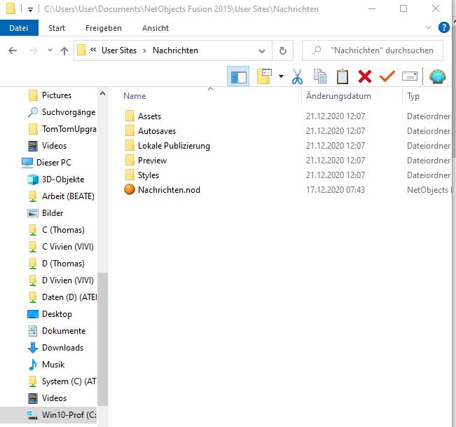 C:\Users\User-Name\Documents\NetObjects Fusion 2015\User Sites\Projekt-Verzeichnis (hier "Nachrichten")