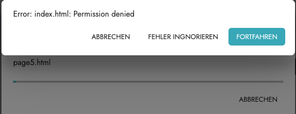 Ich kann die Daten zuerst auf Festplatte speichern und dann von dort über ftp-client auf mein server hochladen. Das klappt einwandfrei. Nur wenn ich mit mobirise hochlade, dann kommen diese Fehlermeldungen. Also scheinbar liegt das Problem bei mobirise. Hat noch jemand irgendeine Idee?