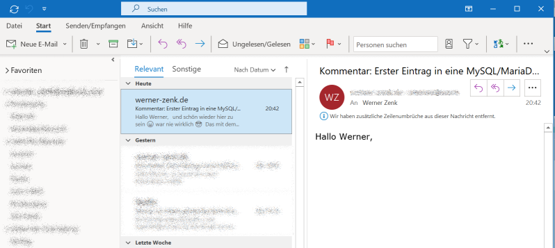 Merkwürdig finde ich, dass "Mail" oder Outlook-Online die Nachrichten angezeigt hatten, nur Outlook nicht.
