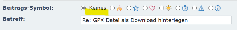 Schaue hier im Forum, wenn du einen Beitrag schreibst, da gibt es diese Beitragssymbole, dort ist auch "Keines" ausgewählt.