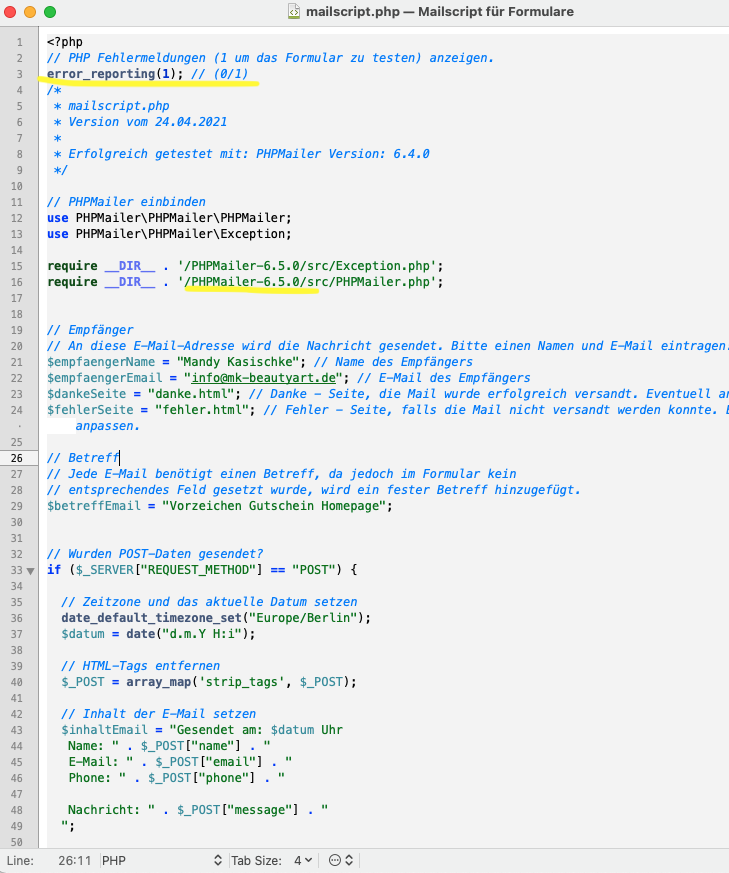 $fehlerSeite = "fehler.html"; // Fehler - Seite, falls die Mail nicht versandt werden konnte. Eventuell anpassen.