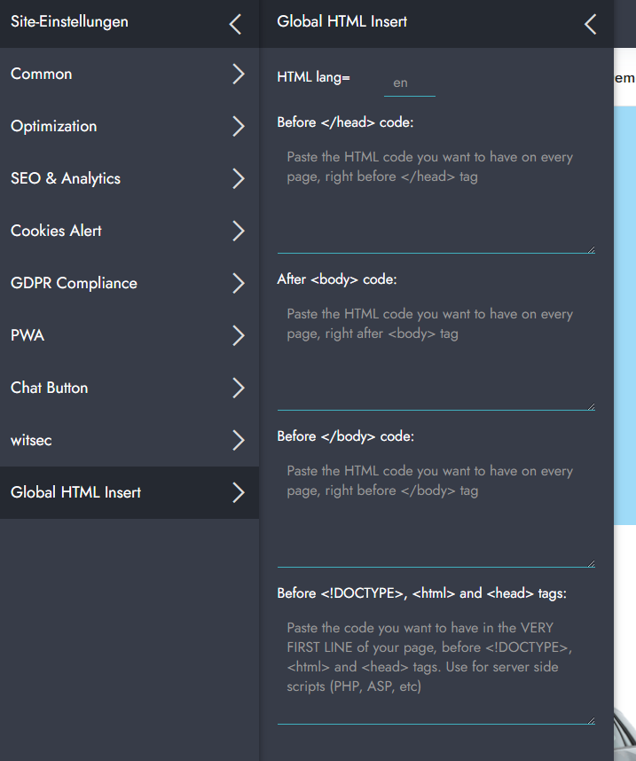 Global HTML Insert".